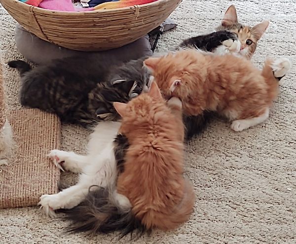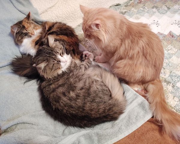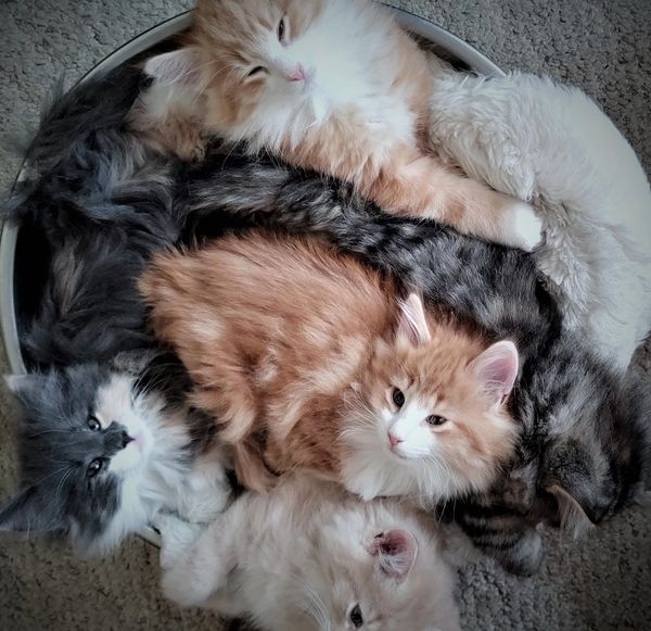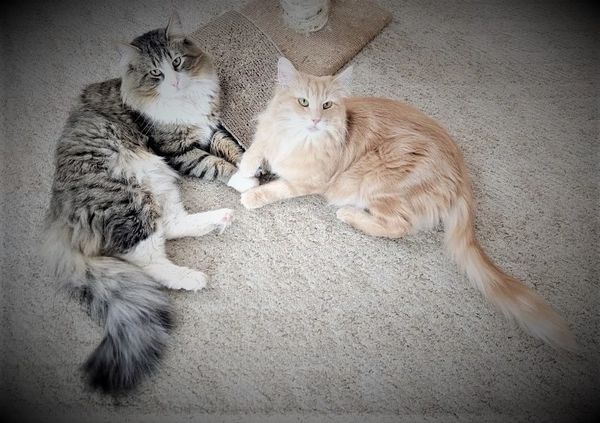 After an unlikely internet contact, the first Norwegian Forest Cats we'd ever seen arrived at our door in June and July of 2018 from the Seven Streams Cymbrogi Cattery in Redding, CA (now in Medford, OR)! We brought home a lovely female kitten in spring 2019 from Forestdolls Cattery in WI. Foebe of Prairie Skies Norwegians, Manitoba, and Felina of Norwood, Siberia, joined us in spring 2021. We welcomed elegant Fjola (Hyacinth) from Prairie Skies in 2024. VikingTails breeding adults have tested negative for feline leukemia virus (FeLV), feline immunodeficiency virus (FIV), and heartworm. None have tested positive for hypertrophic cardiomyopathy (HCM), and we continue to test. We are a member of The International Cat Association (TICA).