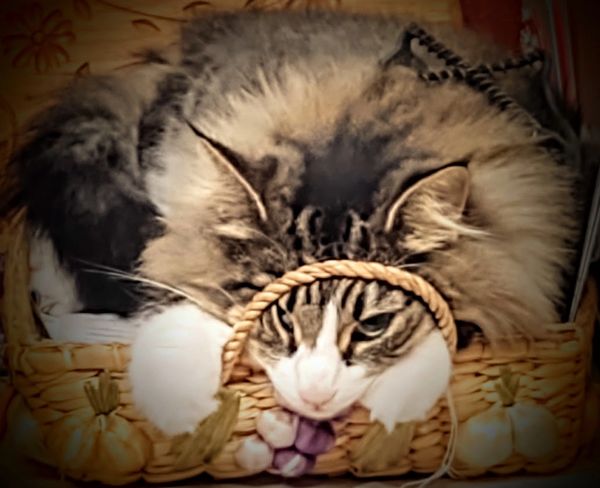 "Bastet" came by air in 2021 from NorWood in Novosibirsk, Siberia, Russia, from the same cattery as Freyja. Felina instantly made herself at home, extending friendship to all.